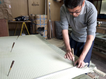 現在ついている縁と畳表をはがし、畳表はひっくり返して裏の使っていない面を表にして縫い付けます。